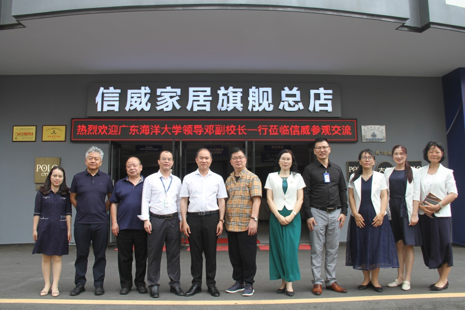 上午約九點,鄧副校長一行7人到訪,隨行的有該校外國語學院院長郭遂紅、外國語學院副書記劉艷以及外國語學院副院長何謙衛(wèi)、安豐科等領(lǐng)導。信威集團副總裁兼信威制造中心總經(jīng)理文總、集團人力行政中心總監(jiān)鄧總等陪同接待鄧副校長一行七人。首先參觀了信威家居體驗中心,體驗中心展廳面積達1.5萬平米,包含實木家具館、現(xiàn)代家具館、中式家具館、美式家居館、軟裝館、整裝館、板木高定館、睡眠中心等,是目前湛江地區(qū)最大的現(xiàn)代化家具家居綜合展示體驗中心。經(jīng)過參觀學習之后,校領(lǐng)導們進一步了解到家具家居的生產(chǎn)工藝、材料品質(zhì)、銷售流程以及設(shè)計、定制、裝修、軟裝、一站式服務(wù)等內(nèi)容。